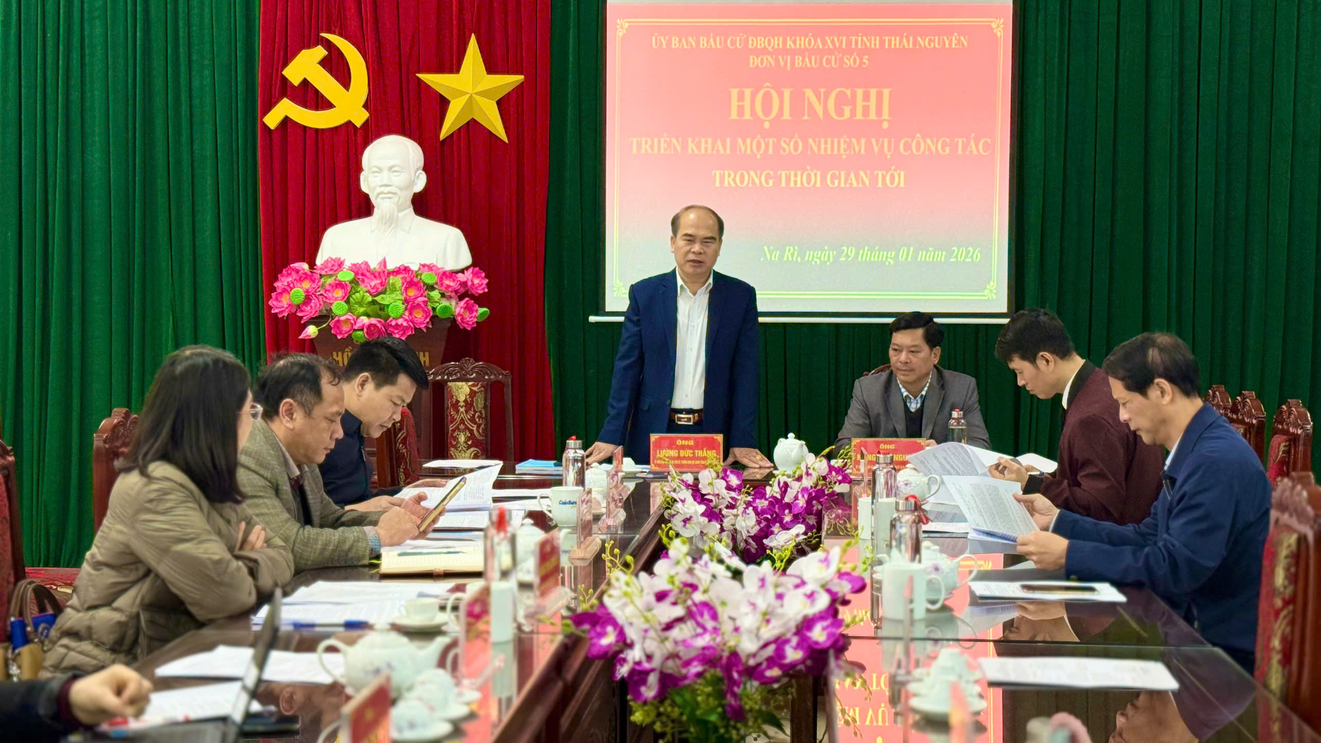 Sáng 29/1, tại Ủy ban nhân dân xã Na Rì, Ban bầu cử đại biểu Quốc hội khóa XVI tỉnh Thái Nguyên, đơn vị bầu cử số 5 tổ chức họp triển khai một số nhiệm vụ công tác. Đồng chí Lường Đức Thắng, Ủy viên Ban Thường vụ Tỉnh ủy, Trưởng Ban Nội chính Tỉnh ủy, Trưởng ban; Nông Văn Nguyên, Tỉnh ủy viên, Bí thư Đảng ủy, Chủ tịch HĐND xã Na Rì, Phó Trưởng ban đồng chủ trì buổi làm việc.