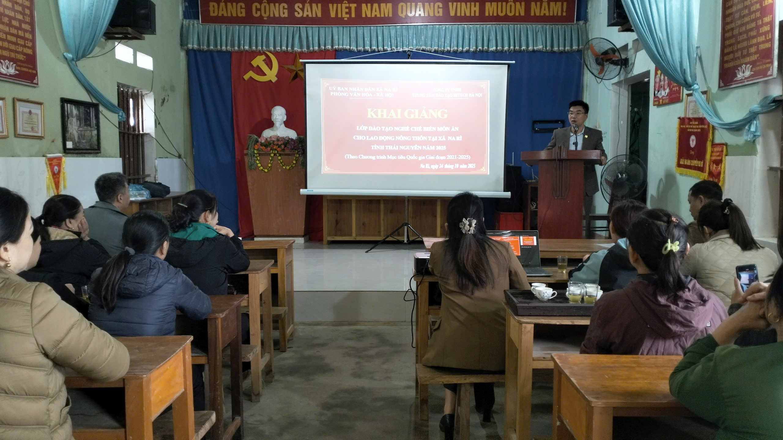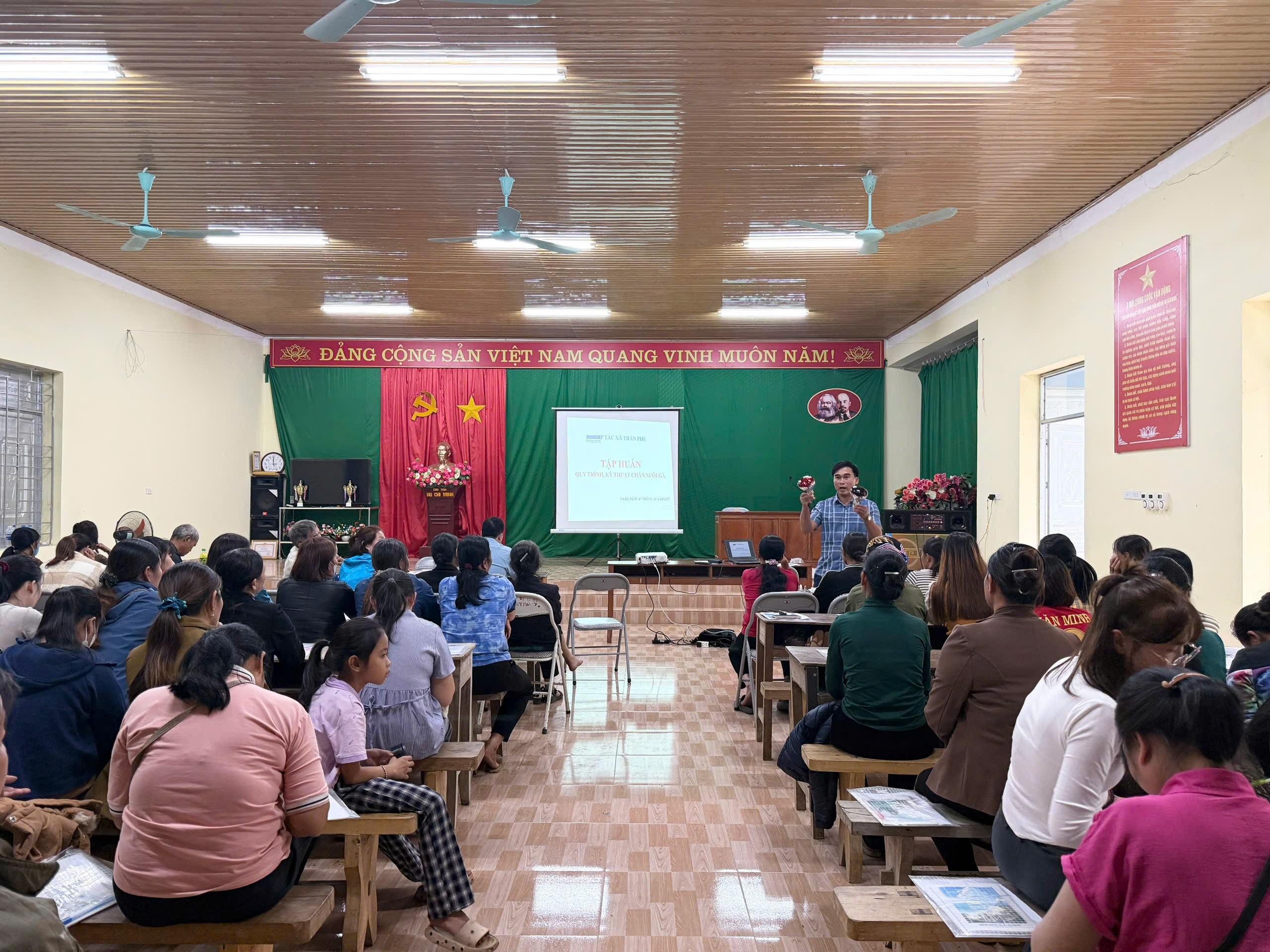 Chiều 7/11, Phòng Kinh tế xã Na Rì tổ chức lớp tập huấn quy trình, kỹ thuật chăn nuôi gà thịt cho các hộ dân tham gia Dự án hỗ trợ phát triển sản xuất cộng đồng chăn nuôi gà thịt thuộc Chương trình Mục tiêu quốc gia phát triển kinh tế – xã hội vùng đồng bào dân tộc thiểu số và miền núi năm 2025.
