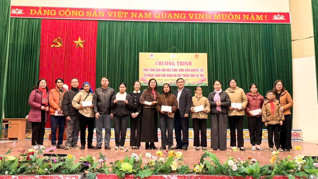 Sáng ngày 21/01, tại xã Na Rì, Hội Bảo trợ người khuyết tật và Bảo vệ quyền trẻ em tỉnh Thái Nguyên phối hợp với Quỹ Thiện Tâm (Tập đoàn Vingroup) tổ chức chương trình trao quà cho học sinh khuyết tật có hoàn cảnh khó khăn trên địa bàn các xã: Na Rì, Trần Phú, Xuân Dương, Văn Lang, Côn Minh và Cường Lợi.